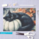 Watercolor Autumn Black Cat Decoupage Craft Tissue Paper featuring a sleepy black cat, white pumpkin, and orange leaves.