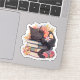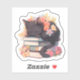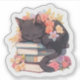 Black Cat Sleeping on Books Sticker, Spring Flowe Sticker