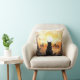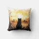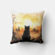 Black Cat Staring at Setting Sun Fall Halloween Throw Pillow