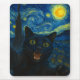 Black Cat Starry Night Van Gogh Cat Selfie Mouse Pad