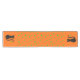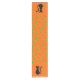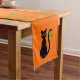 An orange table runner with a black kitty cartoon at each end. The central part of the runner is covered in green stars.