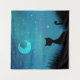 black lovely cat eyeing at the mandala crescent moon at the clear starry sky,