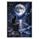 Black Cat Under Full Moon Ocean Night Fantasy Wall Photo Print