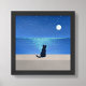 An adorable black cat sitting on a stone wall, staring at the full moon in the starry night sky, a stunning canopy of stars stretches across the sky which is in sync with the shimmering sea below.