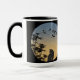 black cat mug, Japanese art mug, bamboo silhouette cup, twilight sky coffee mug, mystical tea mug, cat lover gift, zen morning cup, oriental style mug, bird art mug, peaceful mug design