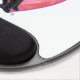 The plastic backing is nice and sturdy. The grippy pads underneath keep the mouse pad where I put it on my table. The pad the mouse sits on is cut well to fit the backing. The wrist pad is perfectly soft, supportive, and thick. I'm left-handed, and this mouse pad works just as well for me as it does for my right-handed friends. I'm the designer of HippieClecticHope products. I'm blown away by how well my intricate fractals turn out on the tangible items in the Zazzle Marketplace. This particular mouse pad ***appears*** like a 3D object... A mathematically-engineered rainbow black opal, inlaid under transparent fabric...