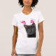 I love wearing a reprint of my colored pencil drawing of Annie the cat looking over the hillside. My illustration is based on a picture I took of Annie the manx cat. The printing turned out lovely, and the shirt is soft and thick. The American Apparel shirt run on the smaller size, so I always order a large or extra large.