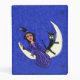 This mini binder is is a deep blue with tiny white faux sparkles and a witch in a purple dress and black hat with a silver star sitting on a white crescent moon. Customize your text with the template.