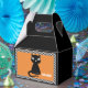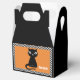 Black Cat with Curled Tail Halloween party favor box with black cat and black and white checkered border (see matching kitchen and dining and party items). Personalize it by adding a name and/or your own text, changing the images and background. If you don't want a Halloween favor box remove orange background and choose or eliminate the font and it's just a cute cat with black and white checks. See coordinating design items, which you can also personalize and customize.