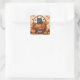 Black Cat with Fall Harvest Basket Brown Square Sticker