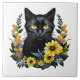 black cat with flowers