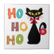 Black cat with Ho Ho Ho text design Ceramic Tile