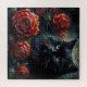 Dive into a dramatic and visually stunning challenge with this richly textured jigsaw puzzle featuring a black cat nestled among deep red roses, rendered in an expressive oil painting style. With bold brush strokes, moody hues, and captivating amber eyes, this gothic-inspired feline art offers an immersive and elegant puzzle experience.