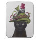 Black Cat with Teapot and Owl by FabFunky. Features a black cat with a teapot and owl atop its head. | 191545D