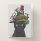 Black Cat with Teapot and Owl by FabFunky. Features a black cat with a teapot and owl atop its head. | 191545D