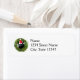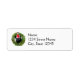A black cat wearing a red and white santa cap peers out from an evergreen wreath on these holiday return address labels.