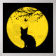 My autumn setting with the silhouette of a Maine Coon cat watching a butterfly and falling leaves in front of a full yellow moon.