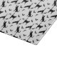 Simple black silhouette pattern of cat and bat silhouettes. One cat is stretching, another is just standing while a third one is reaching toward a flying bat. This design has a modern Halloween aesthetic for those who enjoy a minimal and stylish seasonal look.