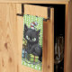 Black Cats Making Mischief Christmas kitchen towel - Fanciful green bubbly background contrasts the fluffy black cats as the main element. The cat is playing with the Christmas presents in one scene and sitting in the Christmas tree in the other. What a fun towel to use year round for any cat lover. These towels make for a quick impromptu design piece to add a little holiday cheer to a sweet vignette, to line a bread basket, use as guest towels or right in the kitchen. These kitchen towels are hard working, great for every day in the kitchen or to use as a decorative element in your home decor.
