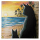Black cats on beach Cat 597 Ceramic Tile
