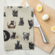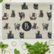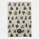 Kitchen dishtowel with black cats design and monogram initial. Cute black kittens and cats cover this towel that is a light beige color. Include a single initial over a round, black circle near the bottom. Makes a lovely gift for any cat lover, or black cat owner, man or woman.