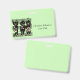 This name or identification badge is light green with three black cats with green eyes playing music with their instruments including a fiddle, guitar, and saxophone while standing on a sheet of black musical notes. Customize your name and information with the templates.