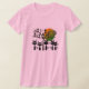 My overall review is that the T-shirt is nice, it fits true to size however the font is significantly smaller than advertised and you can't read it. The printing is unreadable and there is a strain to read it. It does not look like the advertised product. Maybe the shirt color is darker or a larger more visible font should have been used. Photos with and without flash and font is barely legible.