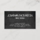 Grungy white chalk-written text on a black chalkboard gives this business card a hip and edgy feel. © 1201AM DESIGNS