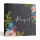 Black Chalkboard Florals Girly Monogram Recipe 3 Ring Binder