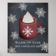This simple and cute " warm up here, hot chocolate bar sign " poster features a black chalkboard background with a red mug of hot chocolate and faux silver glitter snowflakes. Personalize it for your needs. You can find matching products at my store.