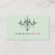 Elegant black and white chandelier on a light-green background, interior design business card template with pink accent. The word design in pink is upside down, but it can be turned around if you like. If you need any help customizing any of my designs, contact ArtOnWear designer.