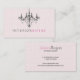 Elegant black and white chandelier on a light pink background, interior design business card template with pink accent. The word design in pink is upside down, but it can be turned around if you like. If you need any help customizing any of my designs, contact ArtOnWear designer.