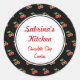 A bright red cherry pattern decorates these retro style stickers. Customize these stickers to suit your needs. Use these stickers for a bakery, baking, baked goods, business, kitchen, food containers, crafts, products, packaging, etc....The design is from original art.