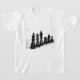 Check out these themed gifts for players of chess, a line of different chess pieces in black.