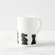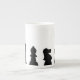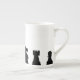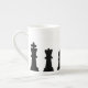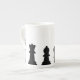 Black chess pieces on white bone china mug