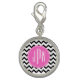 A gift featuring an black and white chevron pattern. Personalize with your monogram on pink circle at center.