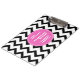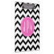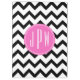 A gift featuring an black and white chevron pattern. Personalize with your monogram on pink circle at center.