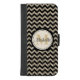 Black Chevron Silver Gold Faux Glitter Monogram iPhone Wallet Case