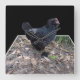 Chicken, Clock, Pictured is a black fluffy chicken in a three dimensional pop out picture.
