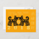 Dog Design stylized and inspired by traditional Chinese papercut in black with greeting in Chinese and English around the design on Yellow (for the Earth element) greeting postcard. Two dogs with the Dog ideogram between them. Available in greeting card. Perfect for Chinese New Year of the Dog 2018 or Birthday (people born in Dog Year). ----- "The Dog (狗) is one of the 12-year cycle of animals which appear in the Chinese zodiac related to the Chinese calendar. The Year of the Dog is associated with the Earthly Branch symbol 戌. The character 狗 refers to the actual animal while 戌 refers to the zodiac animal. (...) People born within these date ranges can be said to have been born in the "Year of the Dog", while also bearing the following elemental sign: