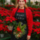 This holiday-designed apron features a black Christmas design with seasonal greenery and snowflakes. A beautifully designed apron to wear while you do crafts, or cook, and if you work as a florist this apron would be nice to wear during the holidays.
