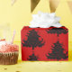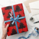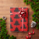 Black and red Christmas trees pattern quality wrapping paper. Heavy duty quality gift wrapping paper on a roll - you choose the length! A pattern of black pine trees, and red swirls, is the design. Contemporary holiday design.