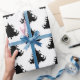 Black Christmas trees pattern quality wrapping paper. White paper on a roll - you choose the length! A pattern of black pine trees with swirling branches is the design. Neutral colors go with everything and work for a minimalist decor.