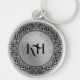 Black Circle Mandala on Iridescent Gray Texture Keychain