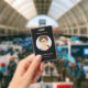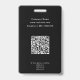 A Minimalist employee badge on a black background with a circle photo frame for company, small business, festival, press staff, etc. It comes with company name, employee's name, job or service on the front. On the back, you have a QR Code, 2 customizable text zones.