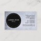 A business card template with a simple but attention grabbing circle with a white dotted edge. Initials Company name and business type on the front, with name and other contact details on the reverse using the same circle motif arranged to one side. This simple but versatile template can be customized in many different ways. This version has a dotted line across the center of the front circle.
