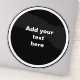 Black circle background with white circle frame ready to personalize. Insert your own personal text.