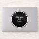 Black circle background with white circle frame ready to personalize. Insert your own personal text.
