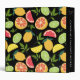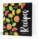 A personalized recipe binder with citrus fruit pattern featuring colorful oranges, lemons, tangerines and grapefruit.
