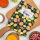 A personalized family name recipe book with citrus fruit pattern featuring colorful oranges, lemons, tangerines and grapefruit.